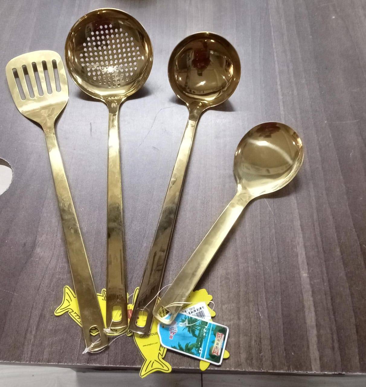 Gold serving spoons